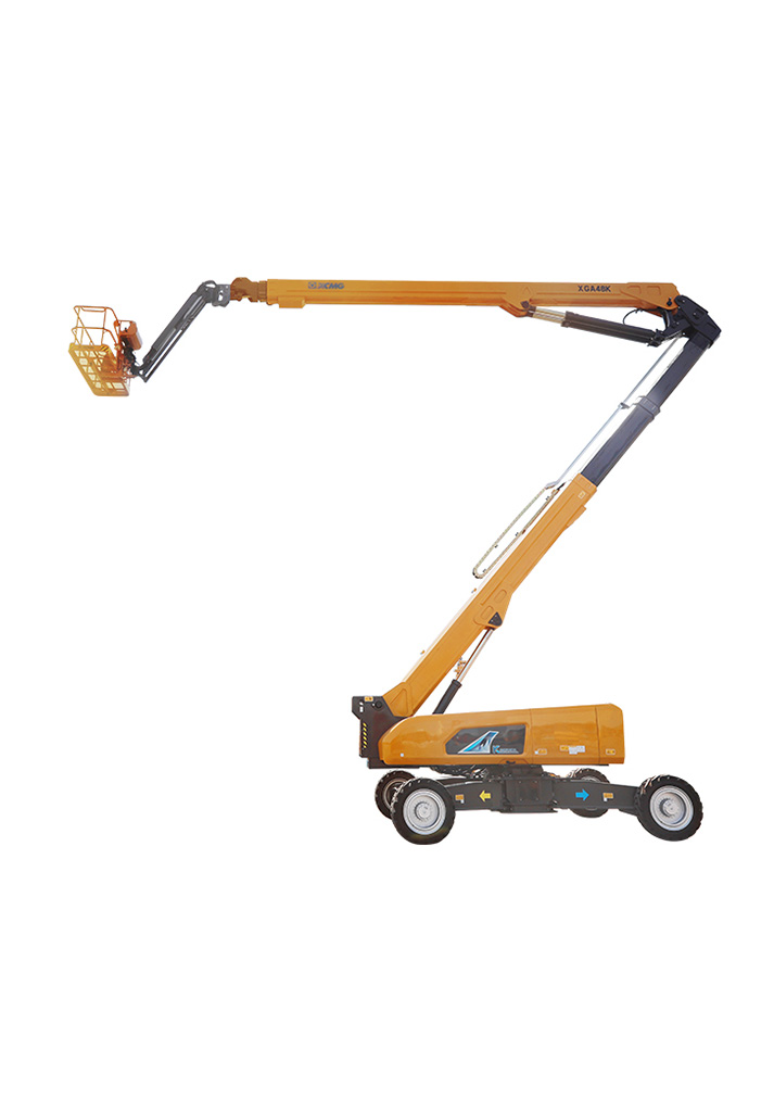 The XCMG XGA48K articulated boom lift has a maximum working height of 48.7m and extensive maximum working outreach of 24.5 metres providing a huge working envelope in all directions. This enables operators to position the platform to the best position efficiently