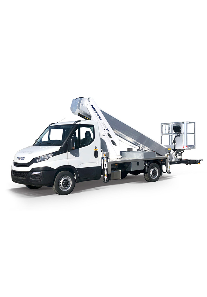 Telescopic aerial platform mounted on a 3.5-ton truck, with maximum working height of 27m.